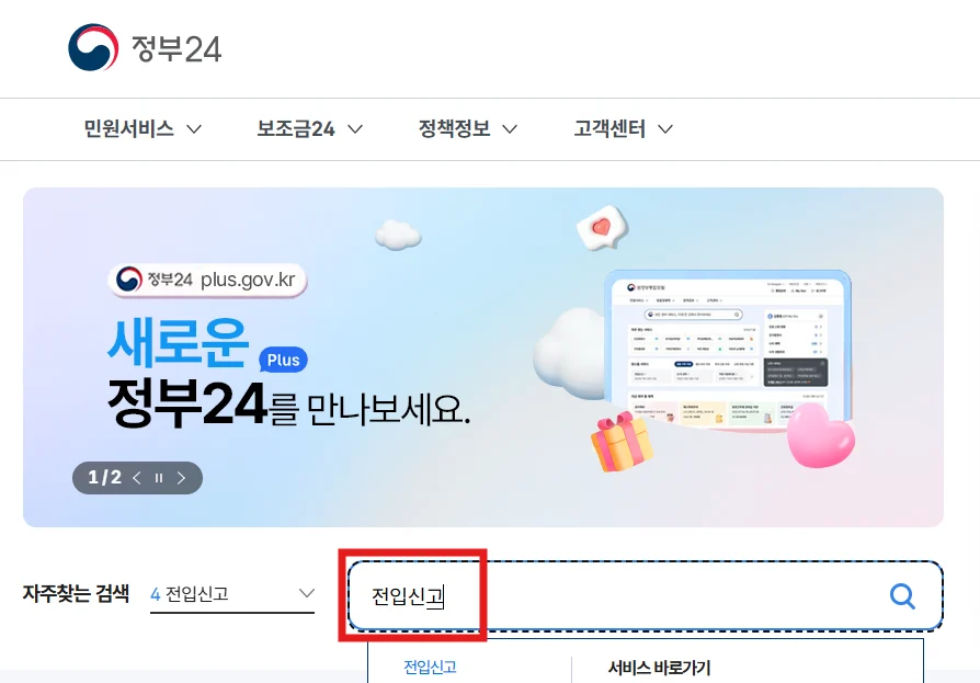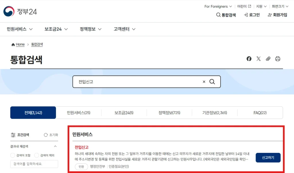 - 로그인 후 ‘전입신고’ 검색